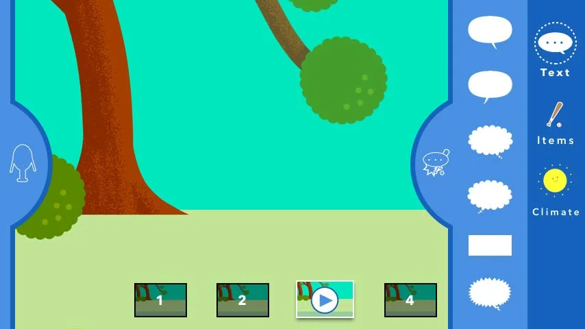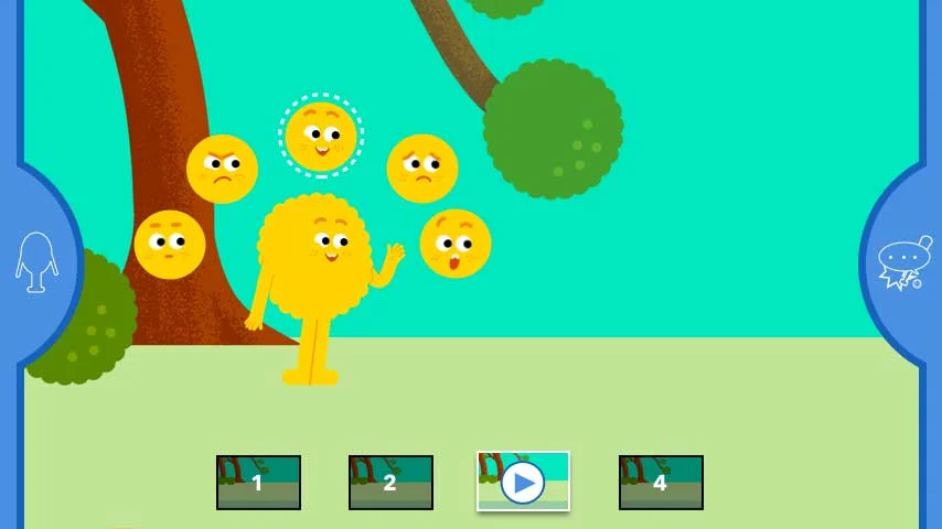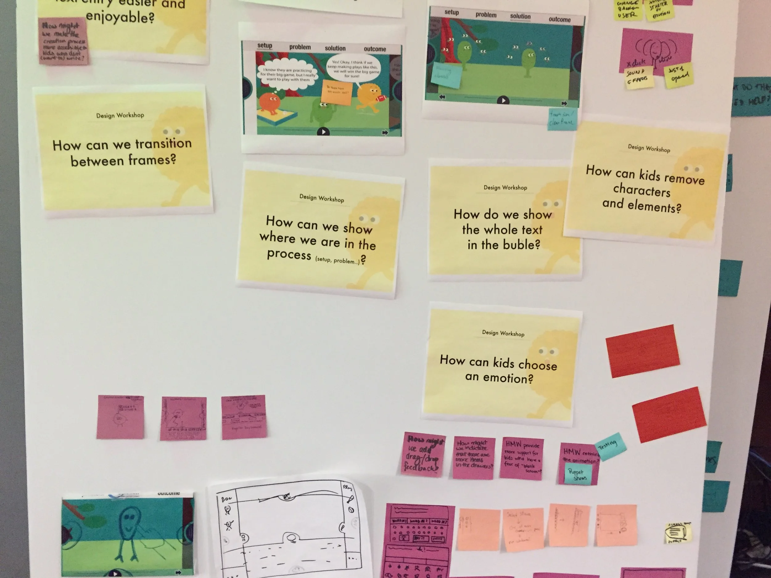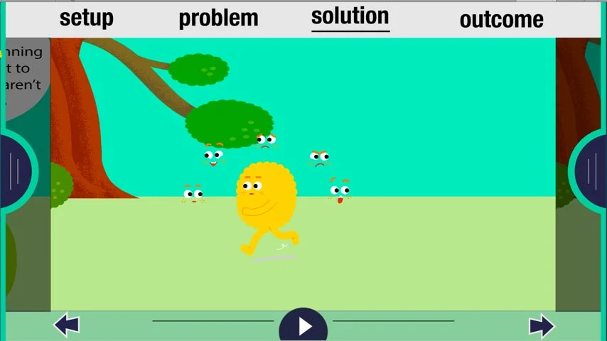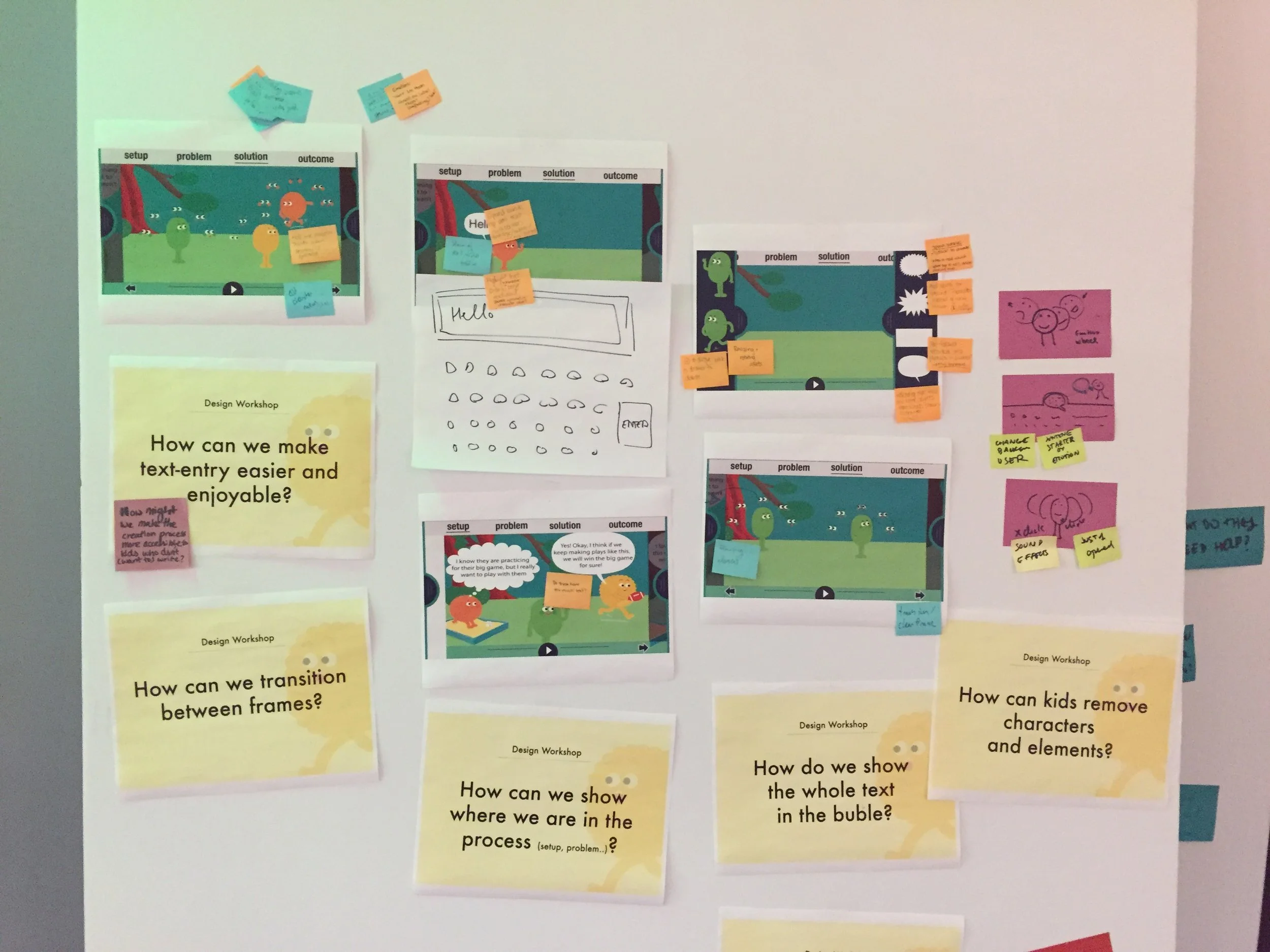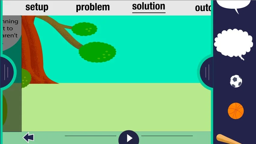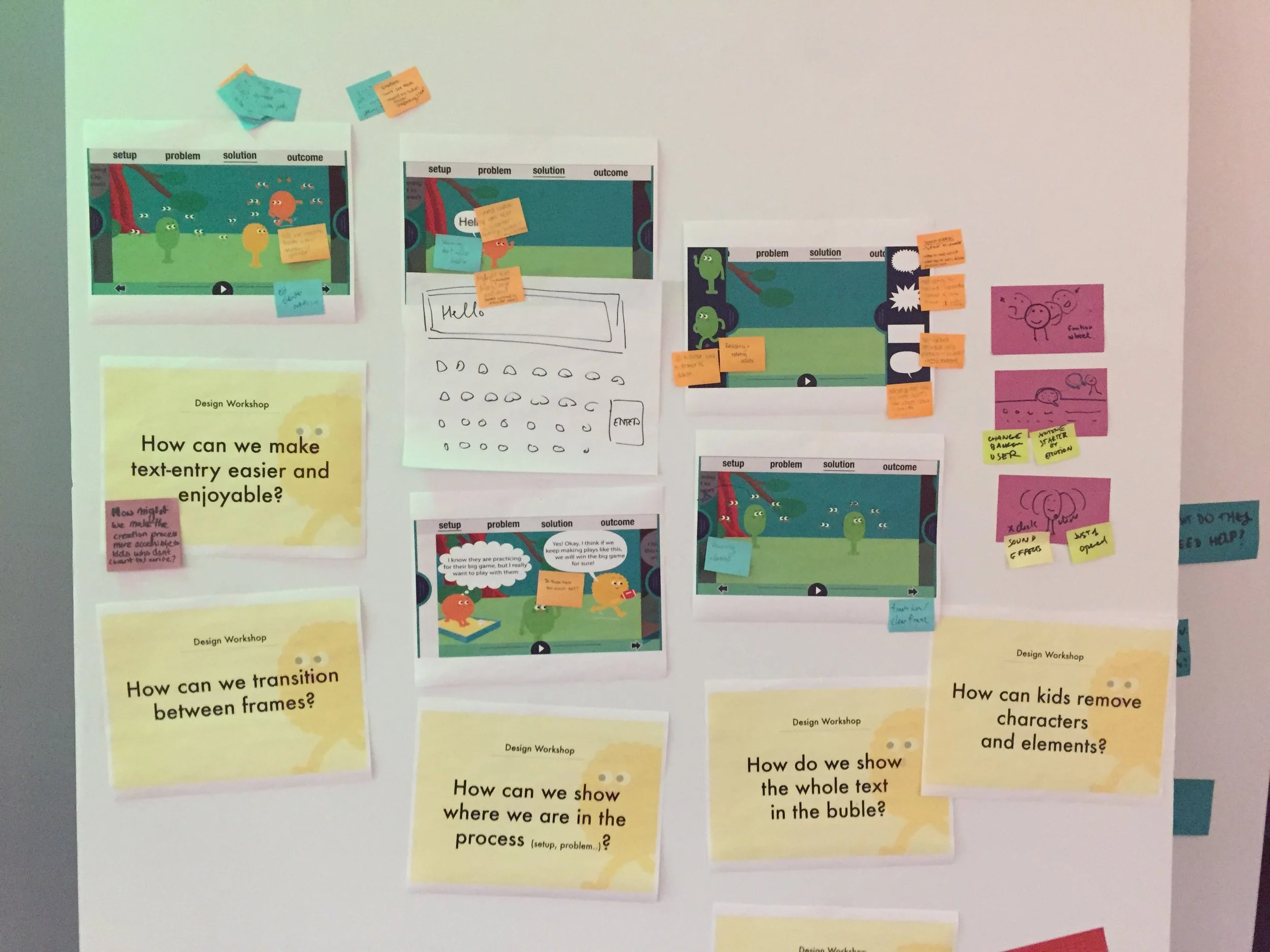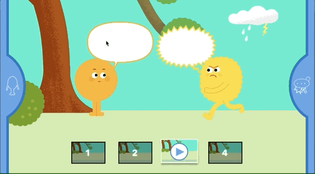 In StoryBlocks, children transition between an animated narrative that sets up a social conflict, and an interactive comic-style composition that allows children to construct their own solutions and share their stories while engaging in critical thinking and reflection..